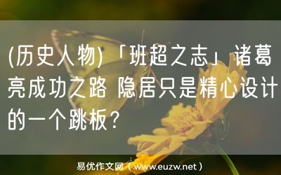 易優(yōu)作文網(wǎng)——(歷史人物)「班超之志」諸葛亮成功之路 隱居只是精心設(shè)計(jì)的一個(gè)跳板?
