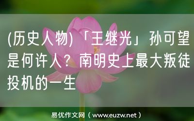 易優(yōu)作文網(wǎng)——(歷史人物)「王繼光」孫可望是何許人?南明史上最大叛徒投機(jī)的一生