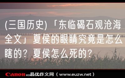 易優(yōu)作文網(wǎng)——(三國歷史)「東臨碣石觀滄海全文」夏侯的眼睛究竟是怎么瞎的?夏侯怎么死的?