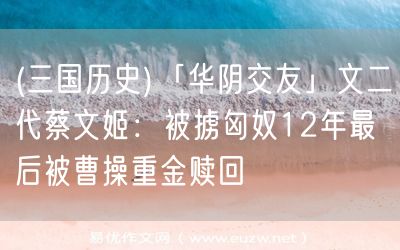 易優(yōu)作文網(wǎng)——(三國(guó)歷史)「華陰交友」文二代蔡文姬:被擄匈奴12年最后被曹操重金贖回