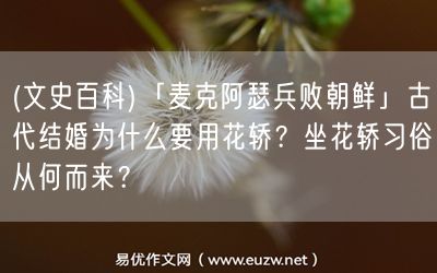 易優(yōu)作文網(wǎng)——(文史百科)「麥克阿瑟兵敗朝鮮」古代結(jié)婚為什么要用花轎?坐花轎習(xí)俗從何而來?