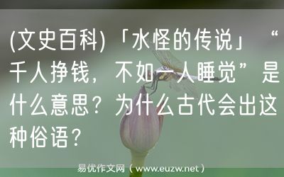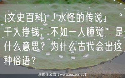易優(yōu)作文網(wǎng)——(文史百科)「水怪的傳說」“千人掙錢,不如一人睡覺”是什么意思?為什么古代會出這種俗語?