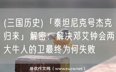易優(yōu)作文網(wǎng)——(三國歷史)「泰坦尼克號杰克歸來」解密:解決鄧艾鐘會兩大牛人的衛(wèi)最終為何失敗