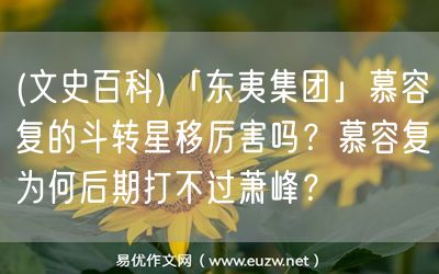 易優(yōu)作文網(wǎng)——(文史百科)「東夷集團」慕容復的斗轉星移厲害嗎?慕容復為何后期打不過蕭峰?