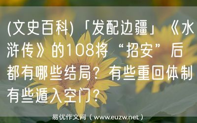 易優(yōu)作文網(wǎng)——(文史百科)「發(fā)配邊疆」《水滸傳》的108將“招安”后都有哪些結(jié)局?有些重回體制有些遁入空門?