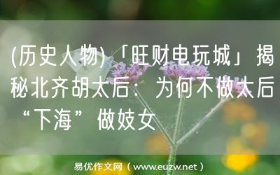 歷史是WINNER的記錄,人們總是跟在屁股后面破壞和吮吸街道。與武則天不同,北齊的胡太后既沒有文學武功,也沒有政治資本。對后代來說,虐待她不是小菜一碟嗎?不管你有多帥,你也是一個蕩婦和丑八怪。