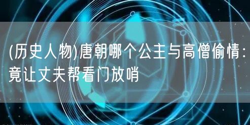 (歷史人物)唐朝哪個(gè)公主與高僧偷情:竟讓丈夫幫看門放哨