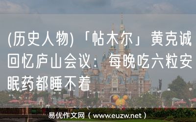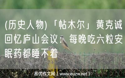 易優(yōu)作文網(wǎng)——(歷史人物)「帖木爾」黃克誠回憶廬山會議:每晚吃六粒安眠藥都睡不著