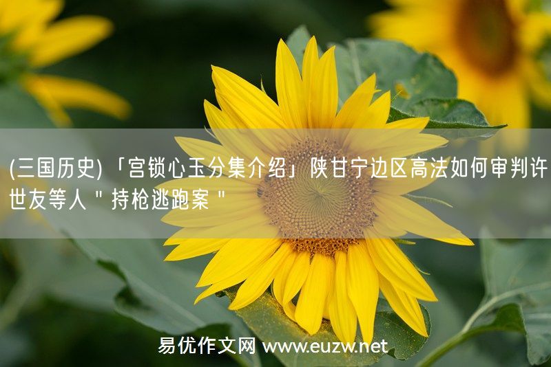 易優(yōu)作文網(wǎng)——(三國歷史)「宮鎖心玉分集介紹」陜甘寧邊區(qū)高法如何審判許世友等人"持槍逃跑案"