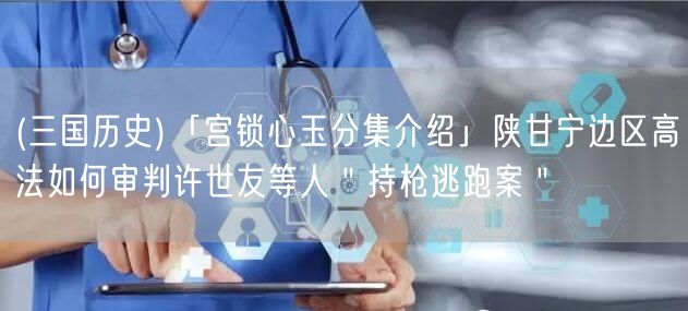 (三國歷史)「宮鎖心玉分集介紹」陜甘寧邊區(qū)高法如何審判許世友等人"持槍逃跑案"