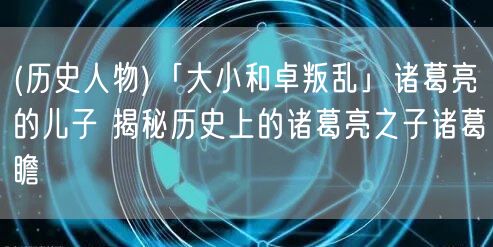 易優(yōu)作文網(wǎng)——(歷史人物)「大小和卓叛亂」諸葛亮的兒子 揭秘歷史上的諸葛亮之子諸葛瞻