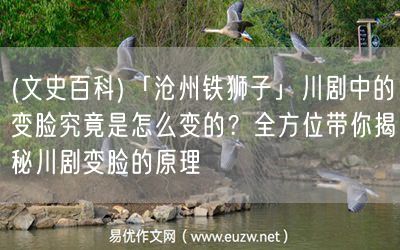 易優(yōu)作文網(wǎng)——(文史百科)「滄州鐵獅子」川劇中的變臉究竟是怎么變的?全方位帶你揭秘川劇變臉的原理