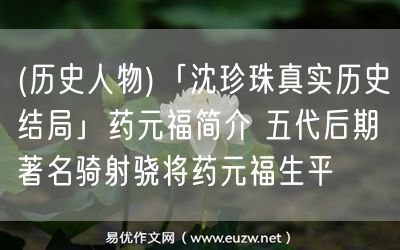 易優(yōu)作文網(wǎng)——(歷史人物)「沈珍珠真實歷史結(jié)局」藥元福簡介 五代后期著名騎射驍將藥元福生平
