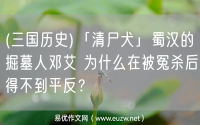 易優(yōu)作文網(wǎng)——(三國歷史)「清尸犬」蜀漢的掘墓人鄧艾 為什么在被冤殺后得不到平反?