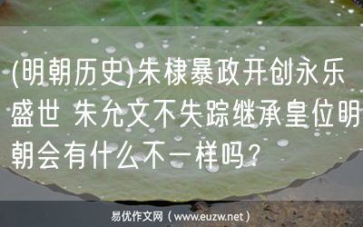 易優(yōu)作文網(wǎng)——(明朝歷史)朱棣暴政開創(chuàng)永樂盛世 朱允文不失蹤繼承皇位明朝會(huì)有什么不一樣嗎?