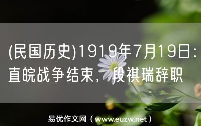 易優(yōu)作文網(wǎng)——(民國歷史)1919年7月19日:直皖戰(zhàn)爭結(jié)束,段祺瑞辭職