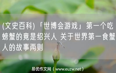易優(yōu)作文網——(文史百科)「世博會游戲」第一個吃螃蟹的竟是紹興人 關于世界第一食蟹人的故事兩則