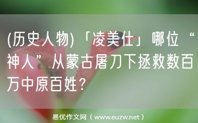 易優(yōu)作文網(wǎng)——(歷史人物)「凌美仕」哪位“神人”從蒙古屠刀下拯救數(shù)百萬中原百姓?