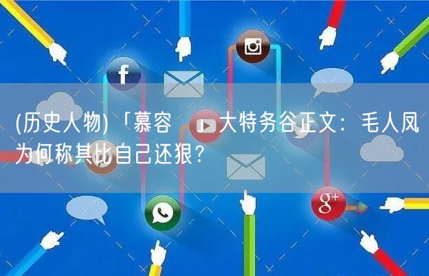 易優(yōu)作文網(wǎng)——(歷史人物)「慕容儁」大特務(wù)谷正文:毛人鳳為何稱其比自己還狠?