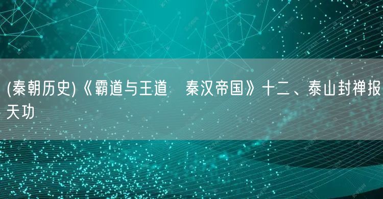 (秦朝歷史)《霸道與王道?秦漢帝國(guó)》十二、泰山封禪報(bào)天功